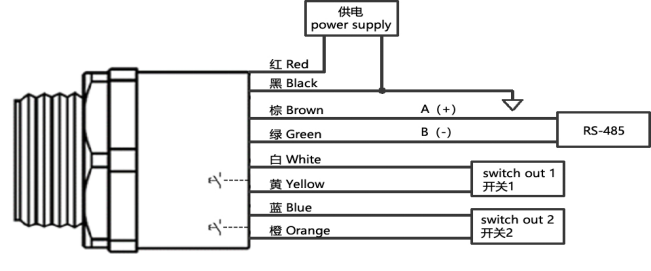 绿色 | 6 | RS485B-/UART_RXD | UART版本绿线为传感器的RXD信号 |